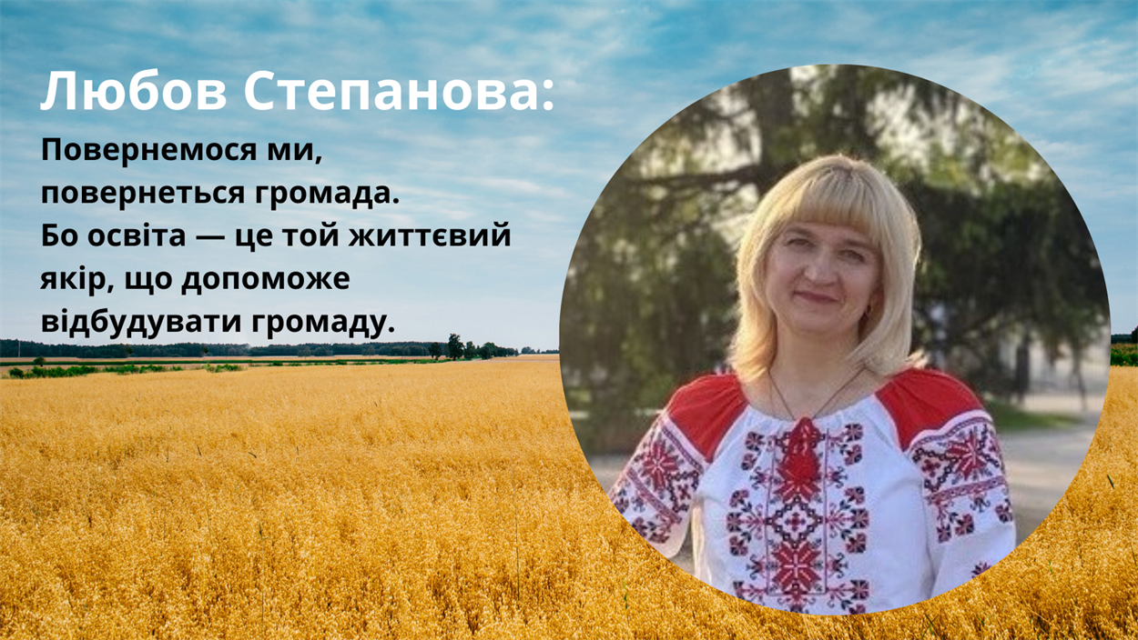 — Чекаємо на перемогу. Тепер ми знаємо, що таке війна, і дуже хочемо миру. Живемо, працюємо та мріємо про дім — налаштовані повернутися у рідне селище. Як швидко — залежатиме не від нас. Але як тільки можна буде, ми зробимо це. Повернемося ми, повернеться громада. Бо освіта — це той життєвий якір, що допоможе відбудувати громаду.