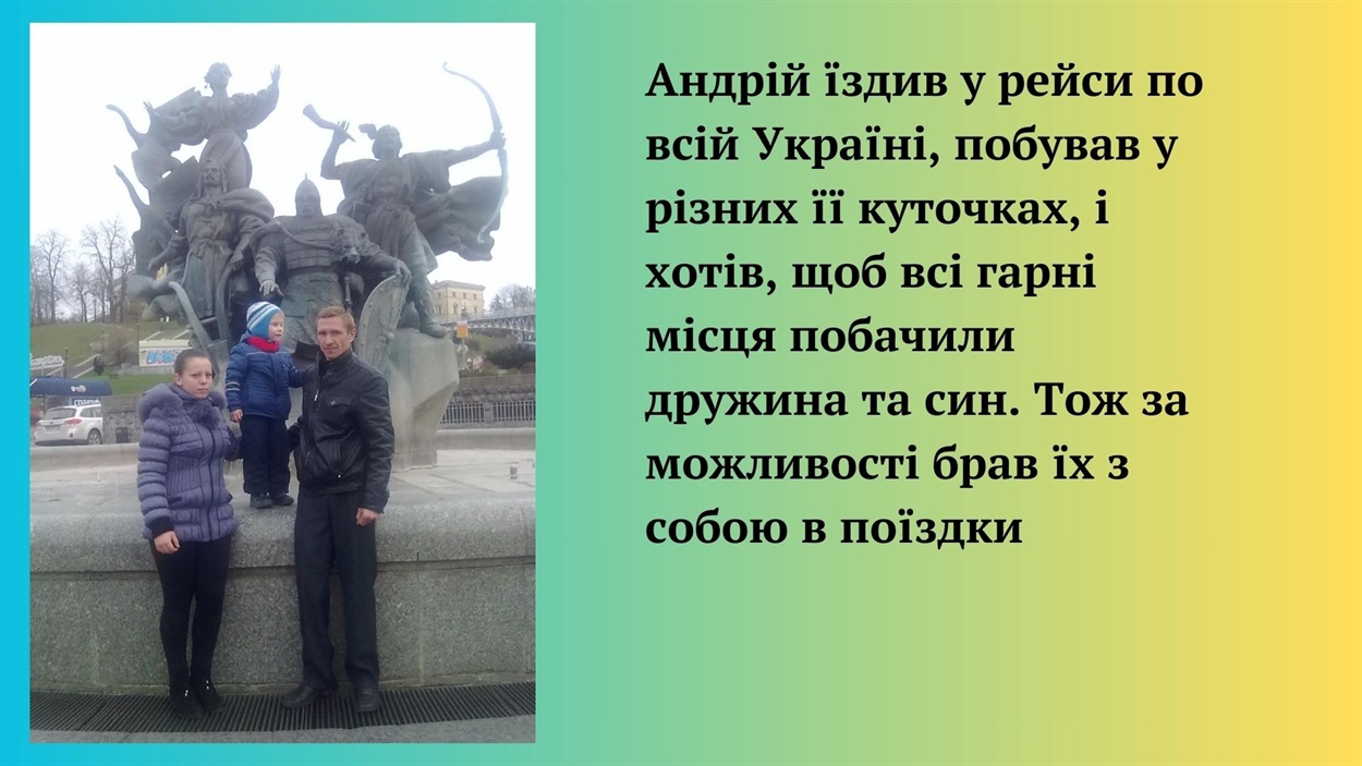 Андрій їздив у рейси по всій Україні, побував у різних її куточках, і хотів, щоб всі гарні місця побачили і ми з сином. Тож чоловік принагідно брав нас з Владленом з собою в поїздки.