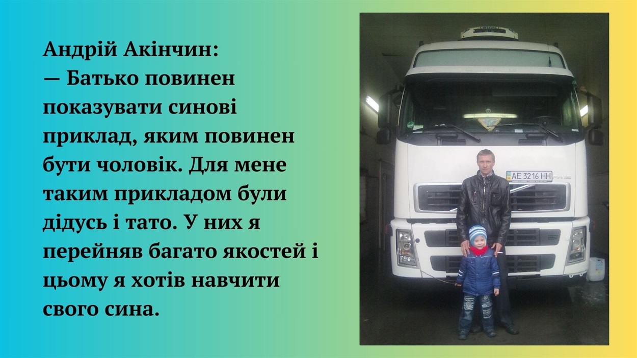 Під час таких поїздок Андрій розповідав синові шоферські секрети, вчив не тільки машину водини, а й як її ремонтувати та що робити у разі непередбачуваних обставин на дорозі. Чоловік все міг зробити своїми руками, тож вчив і сина бути самостійним.