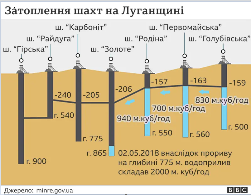 Саме через такі спільні виробки та коридори вода з підземель так званої “ЛНР” прорвалася в шахту “Золоте”.
