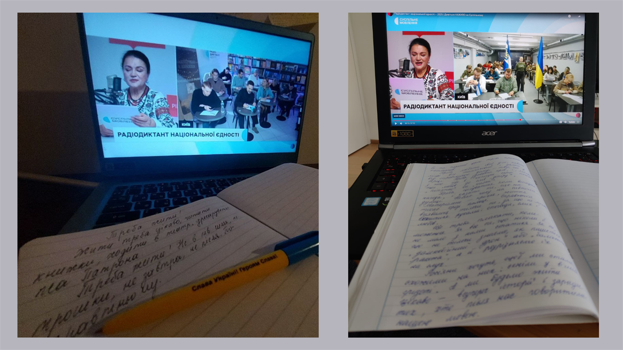 Цікавим і об'єднуючим є й телеефір радіодиктанту, де разом — воїни, волонтери, міністр, посол, студенти, актори, вчителі, журналісти, українці в Україні і за кордоном. Де пам'ятні фото і щемні спогади про українських письменників, яких вбила рф.