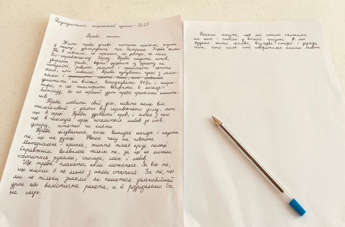 “Сьогоднішній текст насправді чудовий, в стилі Євгенії Кузнецової. Думаю є трохи помилок у розділових знаках, але оскільки навчалася гарно, були гарні вчителі, думаю, що помилок було мінімум”, — поділилася враженнями про участь у написанні радіодиктанту одна з фахівчинь селищної ради.