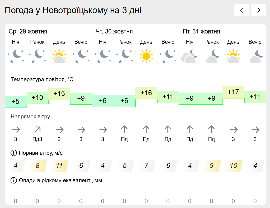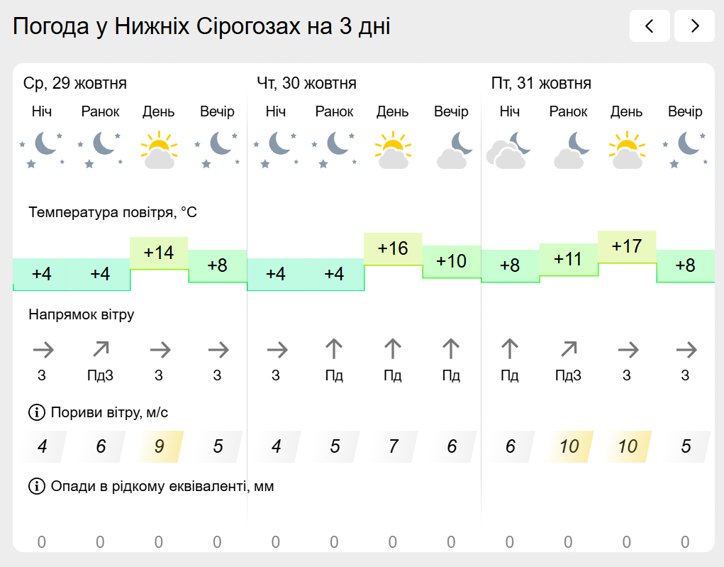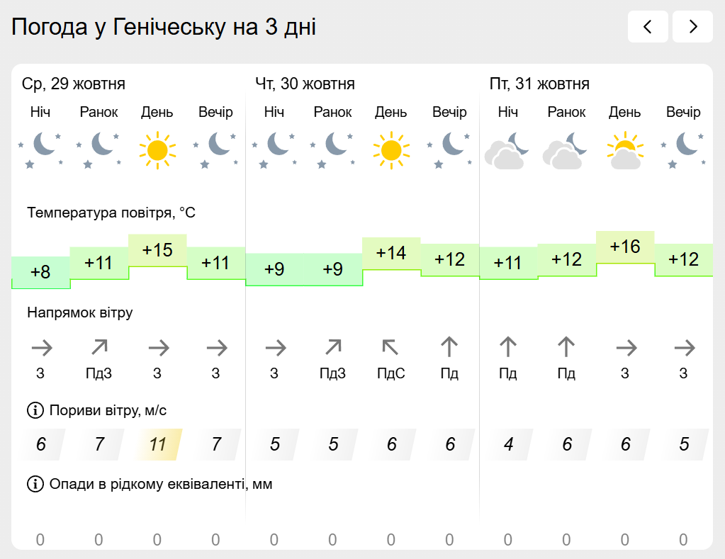 За інформацією Українського гідрометеорологічного центру прогноз погоди в населених пунктах лівобережної Херсонщини: Генічеську, Горностаївці, Великій Лепетисі, Верхньому Рогачку, Нижніх Сірогозах, Новотроїцькому на найближчих три дні.