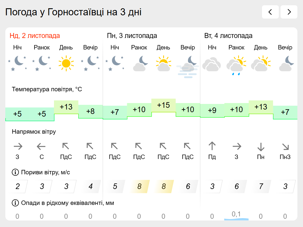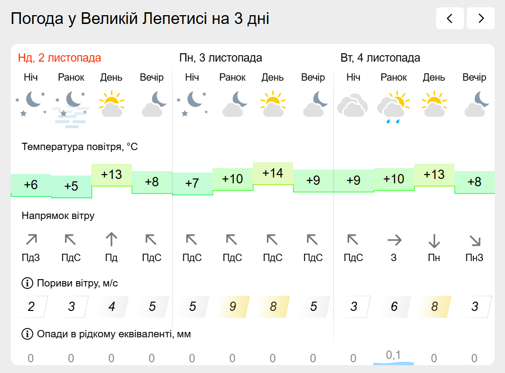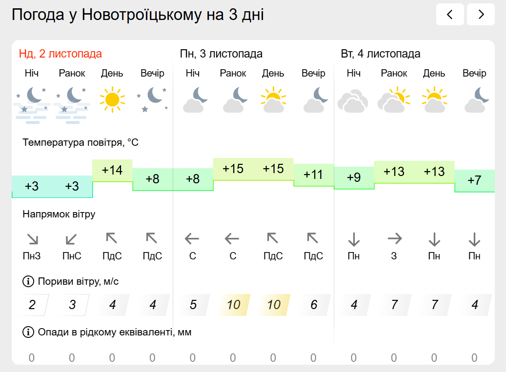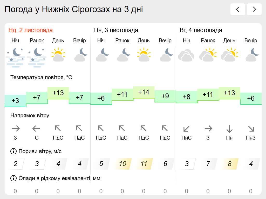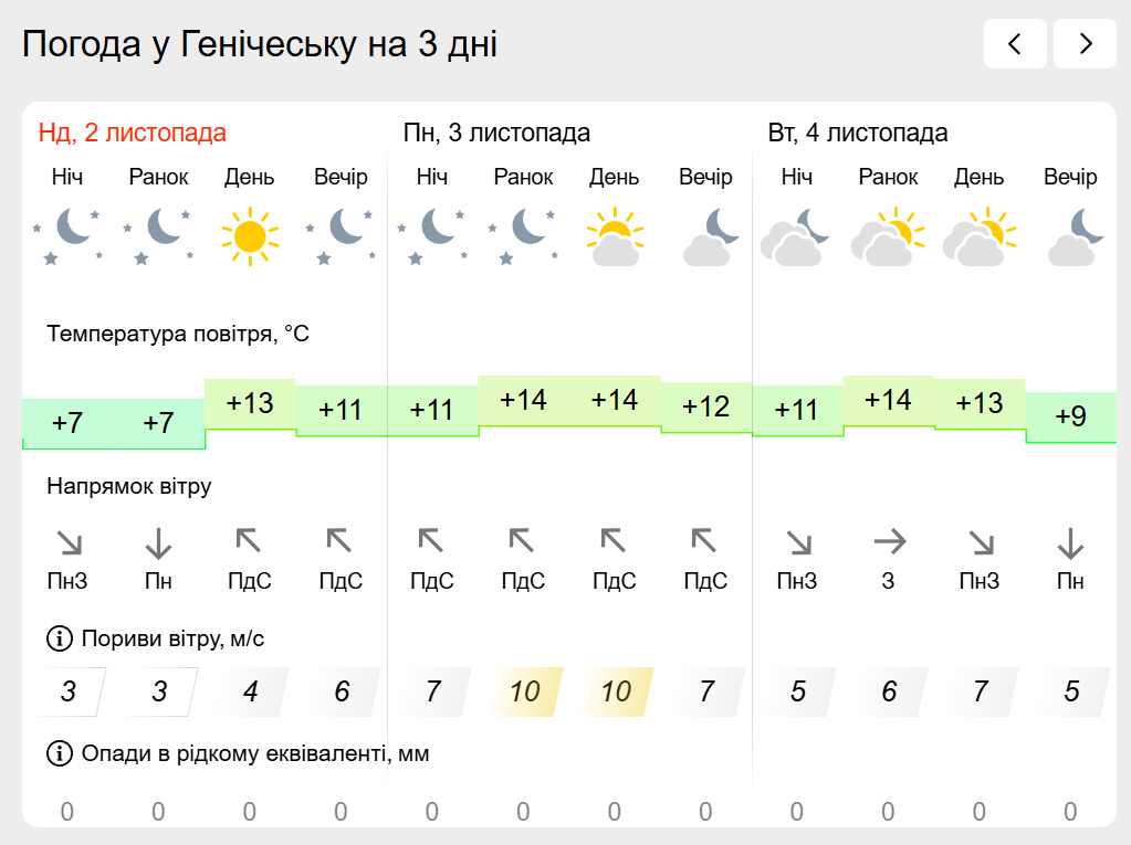 За інформацією Українського гідрометеорологічного центру прогноз погоди в населених пунктах лівобережної Херсонщини: Генічеську, Горностаївці, Великій Лепетисі, Верхньому Рогачку, Нижніх Сірогозах, Новотроїцькому на найближчих три дні.