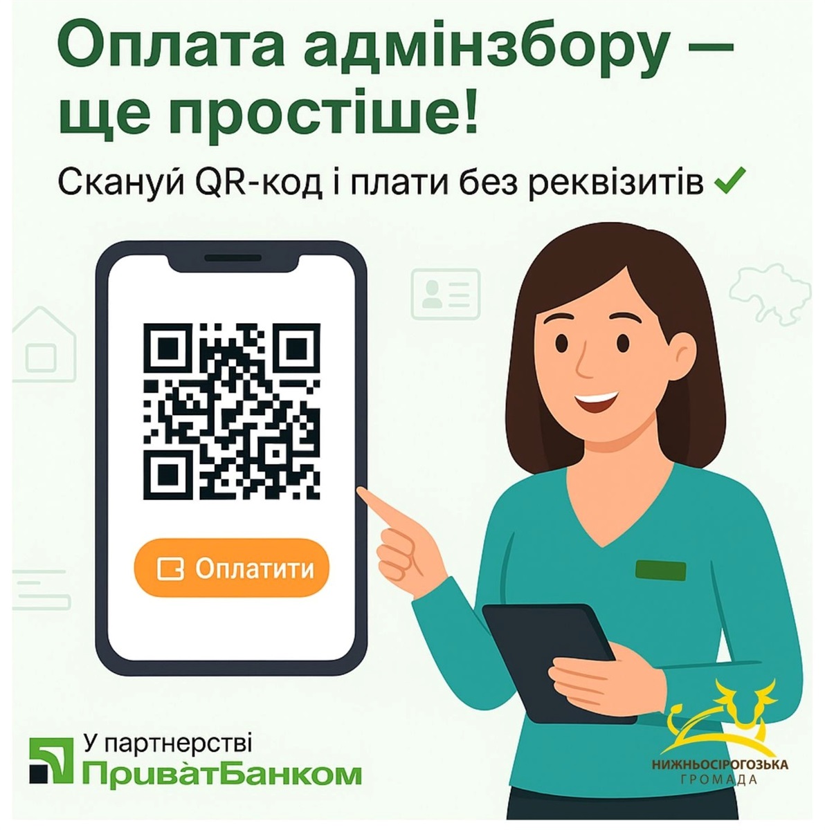 Менше черг, менше помилок, більше зручності! ЦНАП Нижньосірогозької селищної ради впроваджує новий спосіб оплати адміністративних послуг — тепер достатньо лише кількох кліків і QR-коду, щоб оплатити збір за реєстрацію місця проживання.