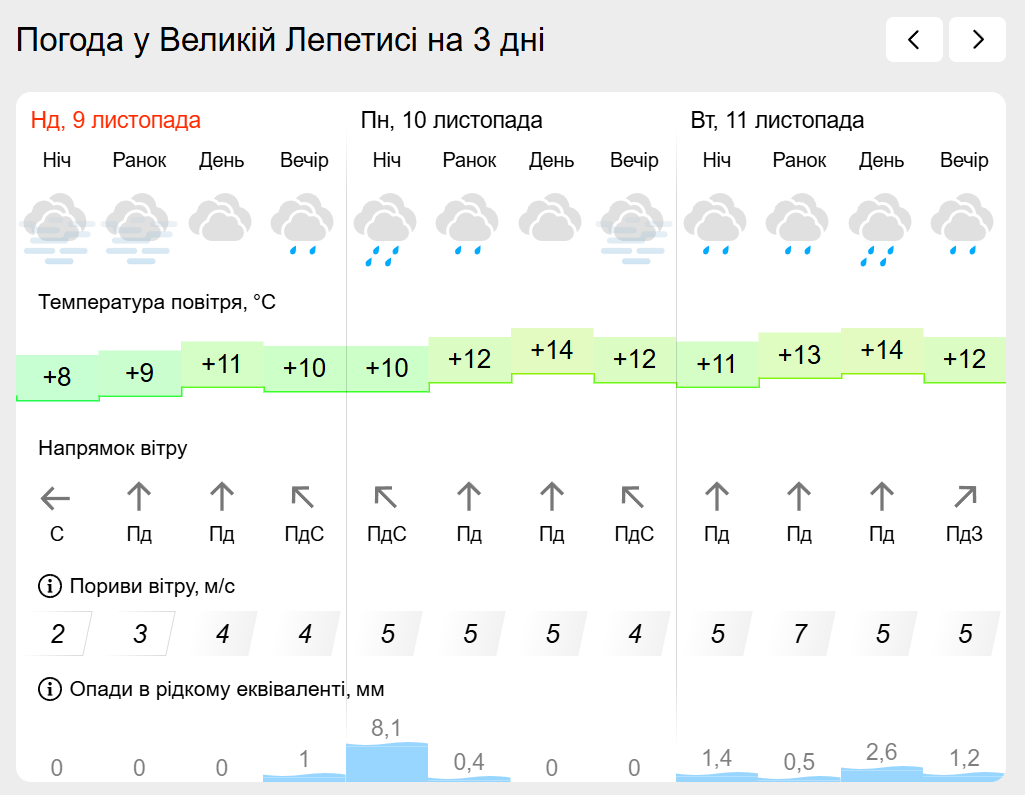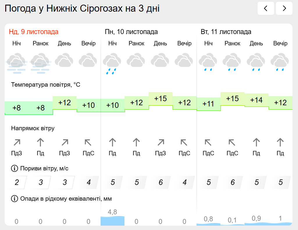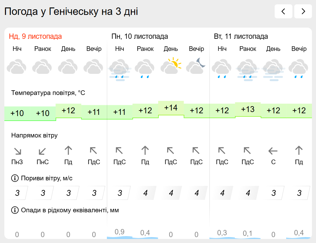 За інформацією Українського гідрометеорологічного центру прогноз погоди в населених пунктах лівобережної Херсонщини: Генічеську, Горностаївці, Великій Лепетисі, Верхньому Рогачку, Нижніх Сірогозах, Новотроїцькому на найближчих три дні.