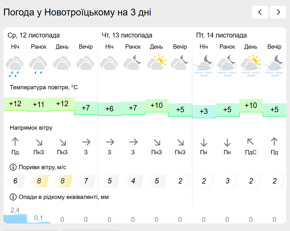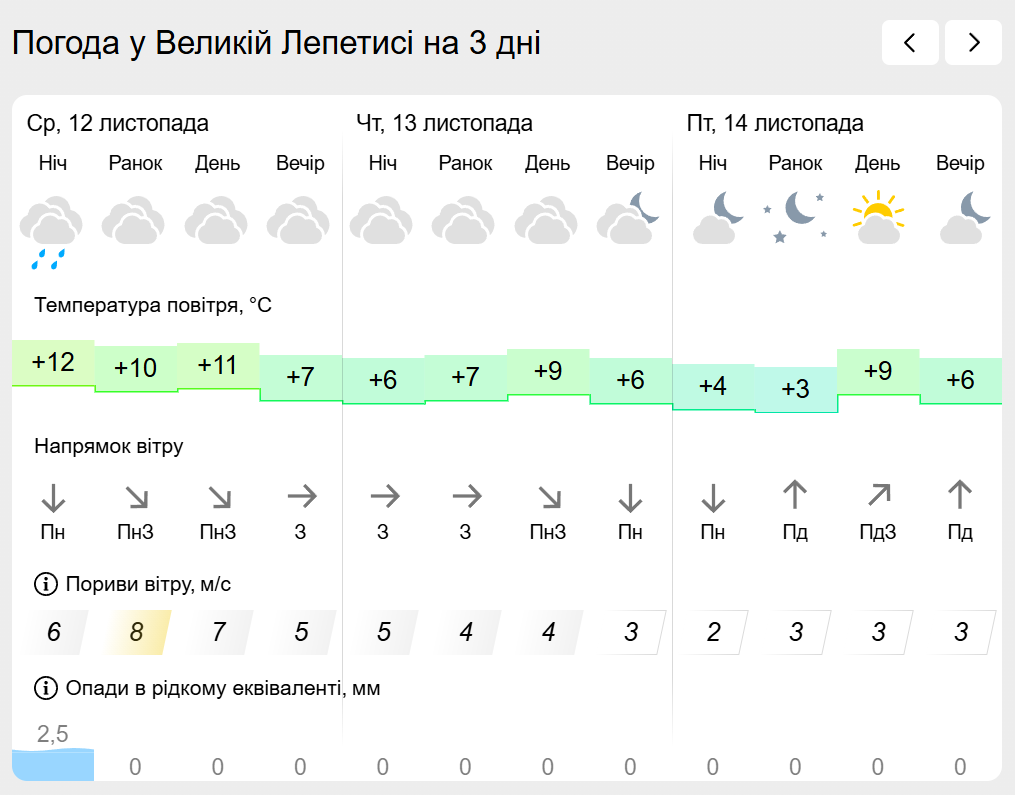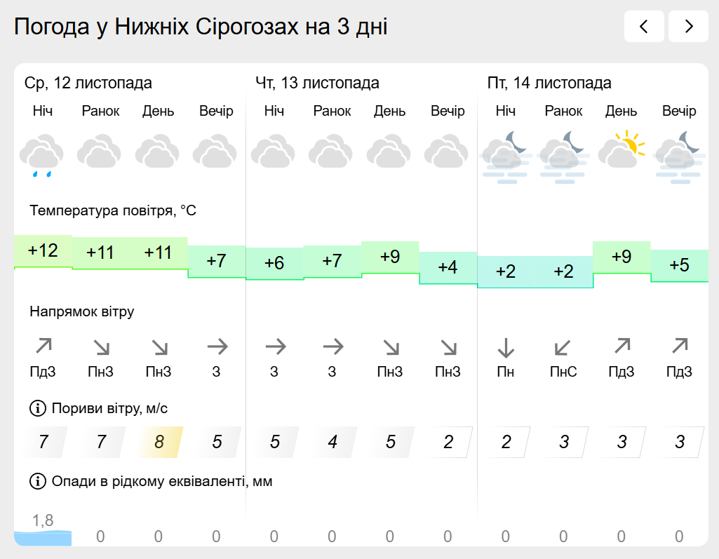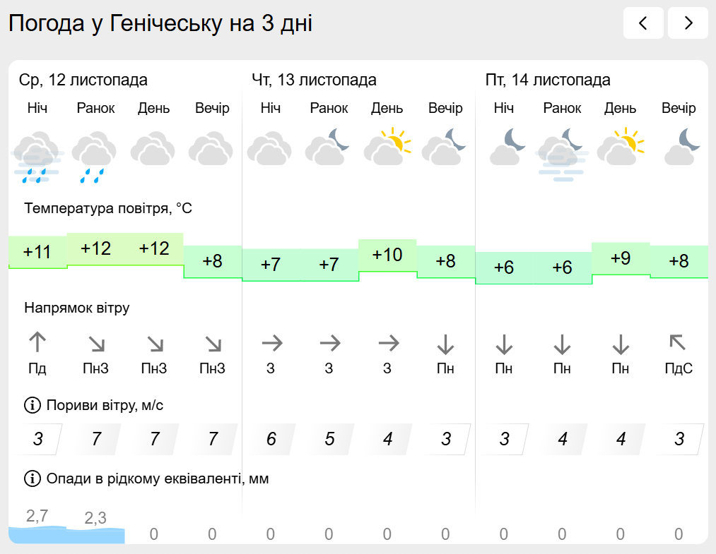 За інформацією Українського гідрометеорологічного центру прогноз погоди в населених пунктах лівобережної Херсонщини: Генічеську, Горностаївці, Великій Лепетисі, Верхньому Рогачку, Нижніх Сірогозах, Новотроїцькому на найближчих три дні.