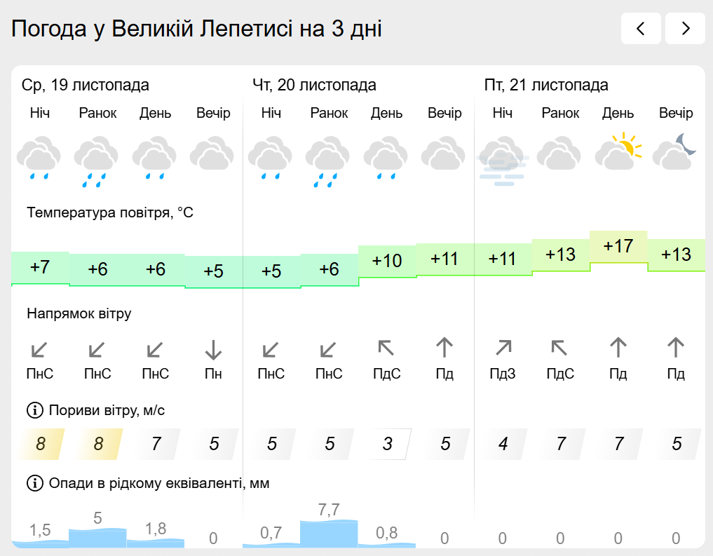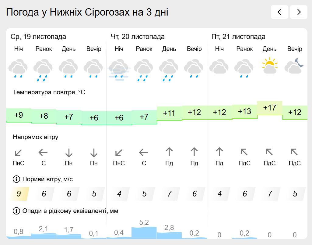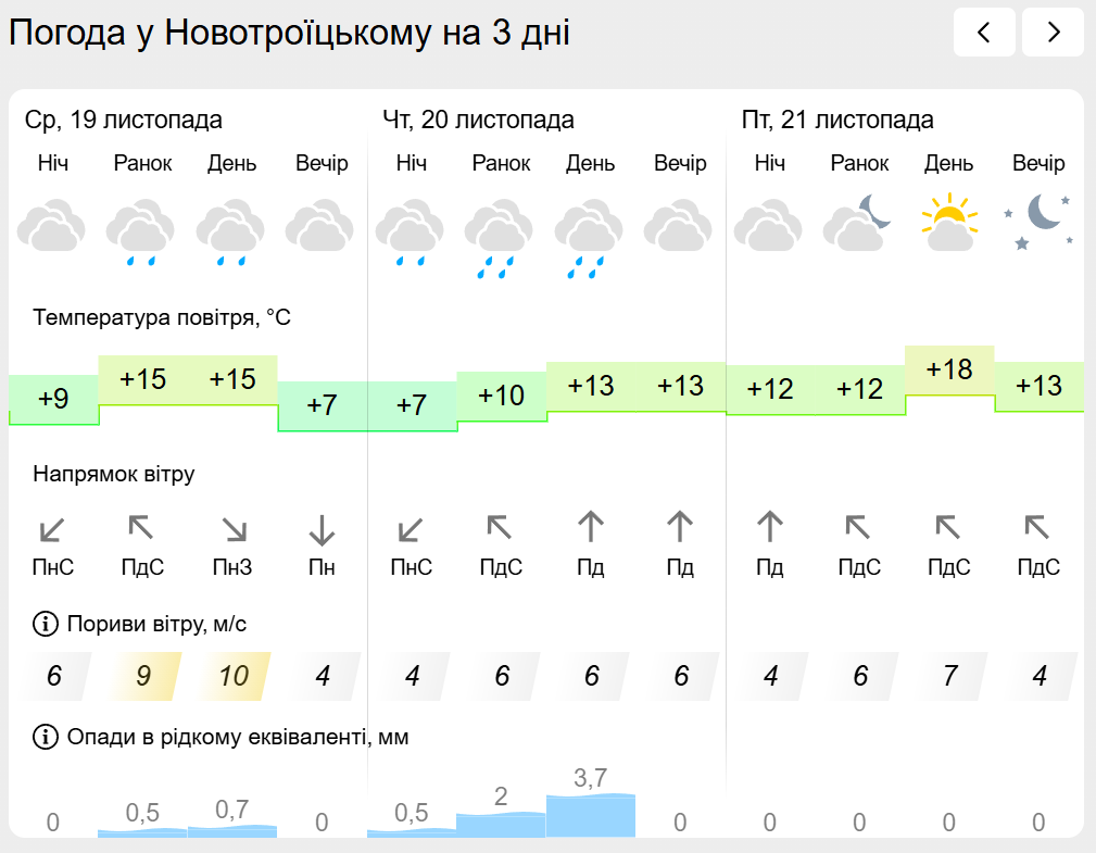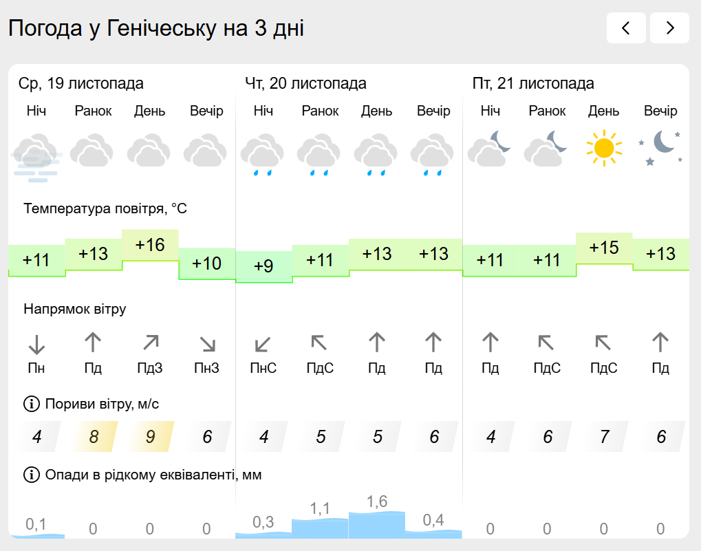 За інформацією Українського гідрометеорологічного центру прогноз погоди в населених пунктах лівобережної Херсонщини: Генічеську, Горностаївці, Великій Лепетисі, Верхньому Рогачку, Нижніх Сірогозах, Новотроїцькому на найближчих три дні.