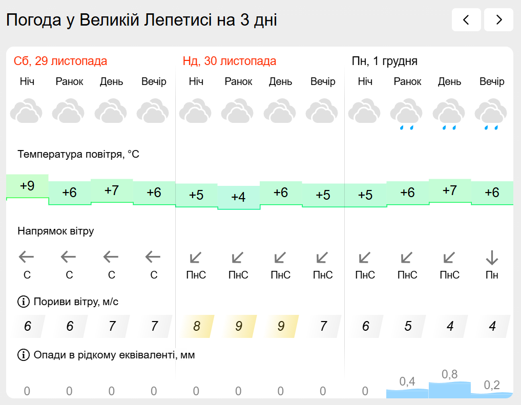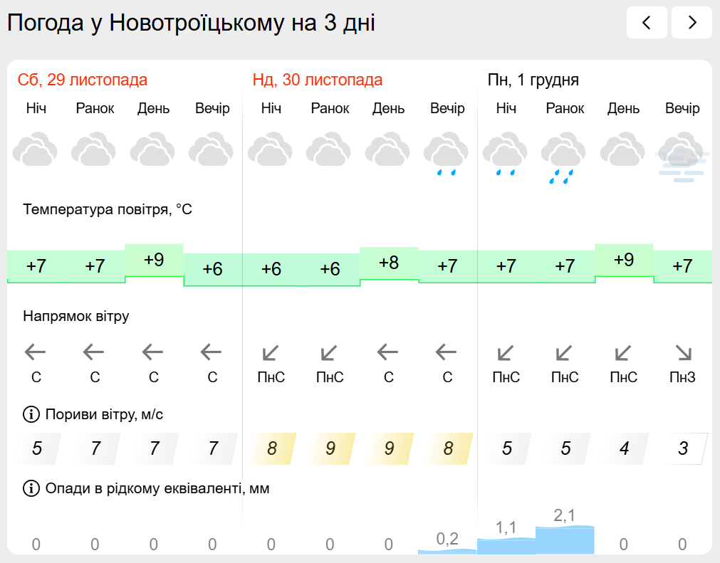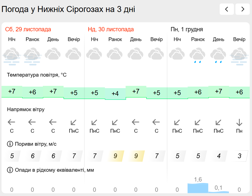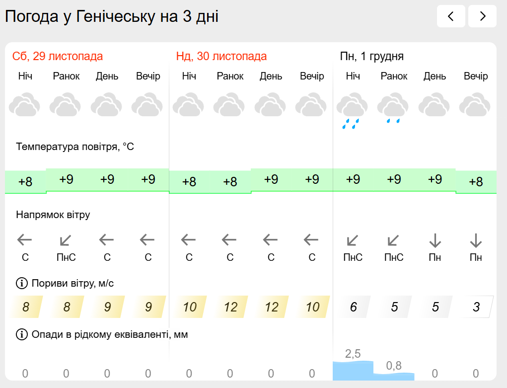 За інформацією Українського гідрометеорологічного центру прогноз погоди в населених пунктах лівобережної Херсонщини: Генічеську, Горностаївці, Великій Лепетисі, Верхньому Рогачку, Нижніх Сірогозах, Новотроїцькому на найближчих три дні.