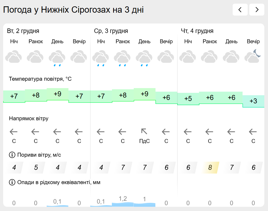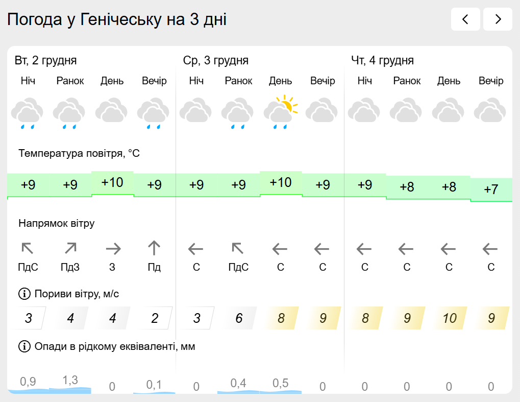 За інформацією Українського гідрометеорологічного центру прогноз погоди в населених пунктах лівобережної Херсонщини: Генічеську, Горностаївці, Великій Лепетисі, Верхньому Рогачку, Нижніх Сірогозах, Новотроїцькому на найближчих три дні.