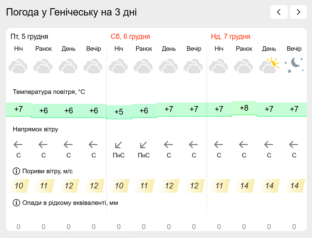 За інформацією Українського гідрометеорологічного центру прогноз погоди в населених пунктах лівобережної Херсонщини: Генічеську, Горностаївці, Великій Лепетисі, Верхньому Рогачку, Нижніх Сірогозах, Новотроїцькому на найближчих три дні.