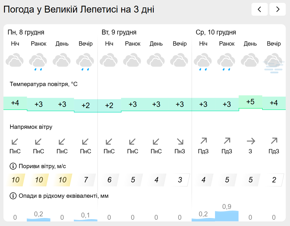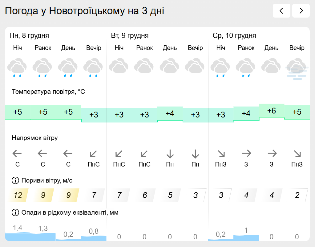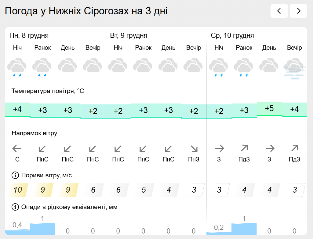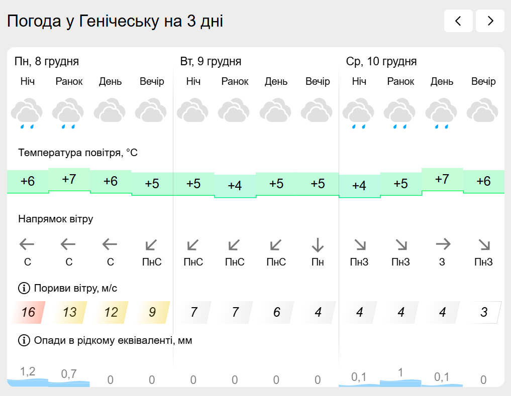За інформацією Українського гідрометеорологічного центру прогноз погоди в населених пунктах лівобережної Херсонщини: Генічеську, Горностаївці, Великій Лепетисі, Верхньому Рогачку, Нижніх Сірогозах, Новотроїцькому на найближчих три дні.