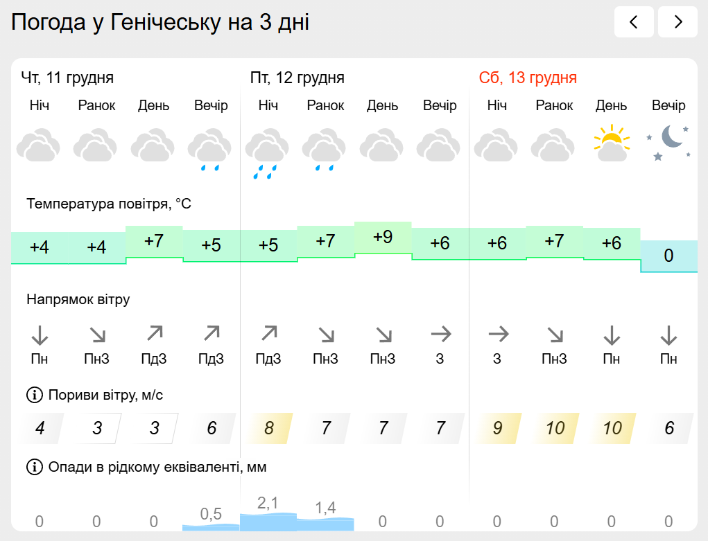 За інформацією Українського гідрометеорологічного центру прогноз погоди в населених пунктах лівобережної Херсонщини: Генічеську, Горностаївці, Великій Лепетисі, Верхньому Рогачку, Нижніх Сірогозах, Новотроїцькому на найближчих три дні.