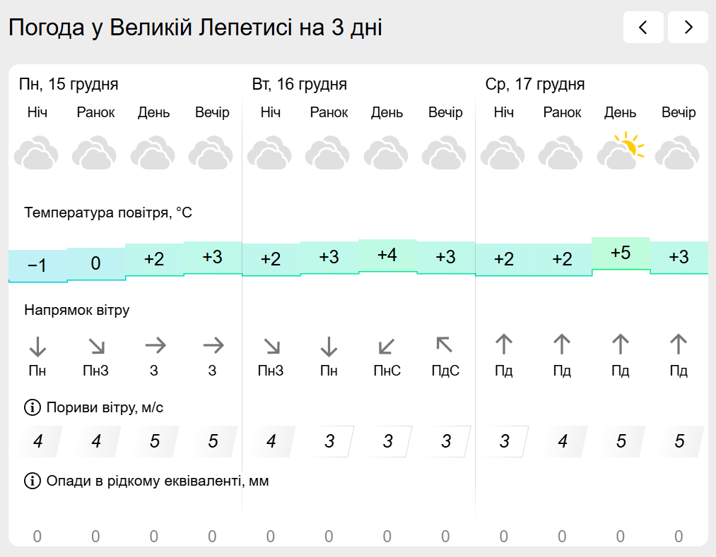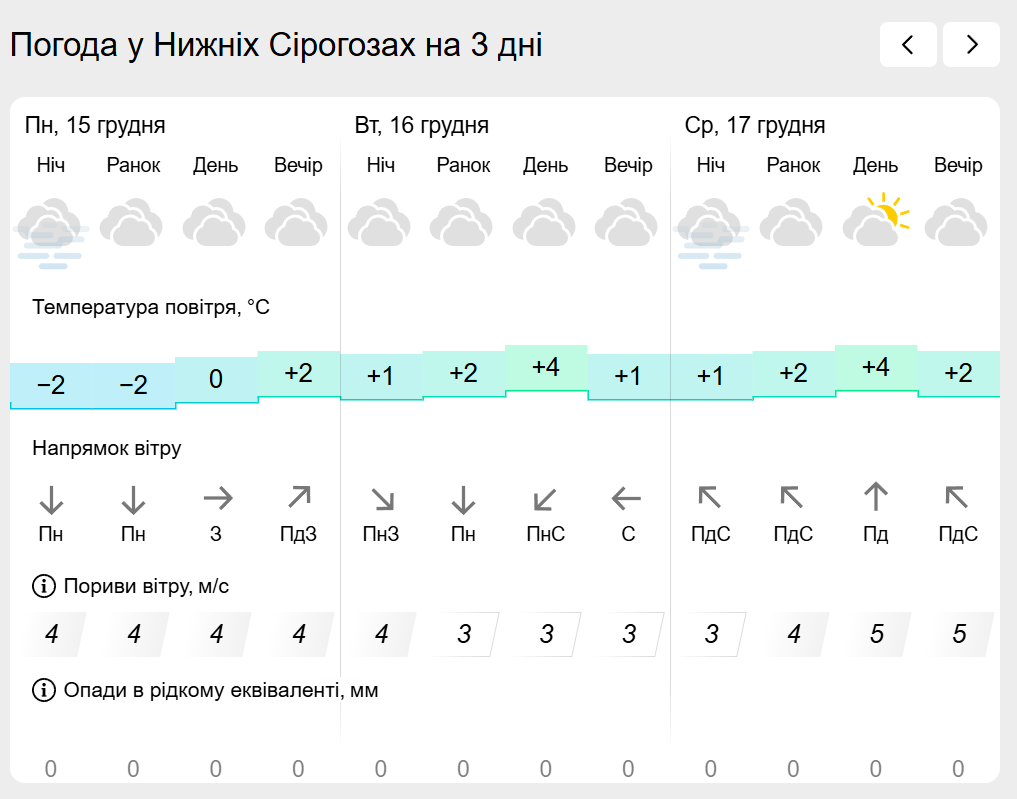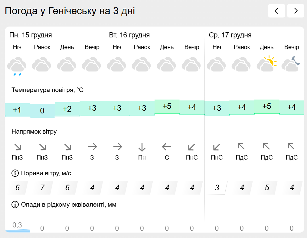 За інформацією Українського гідрометеорологічного центру прогноз погоди в населених пунктах лівобережної Херсонщини: Генічеську, Горностаївці, Великій Лепетисі, Верхньому Рогачку, Нижніх Сірогозах, Новотроїцькому на найближчих три дні.