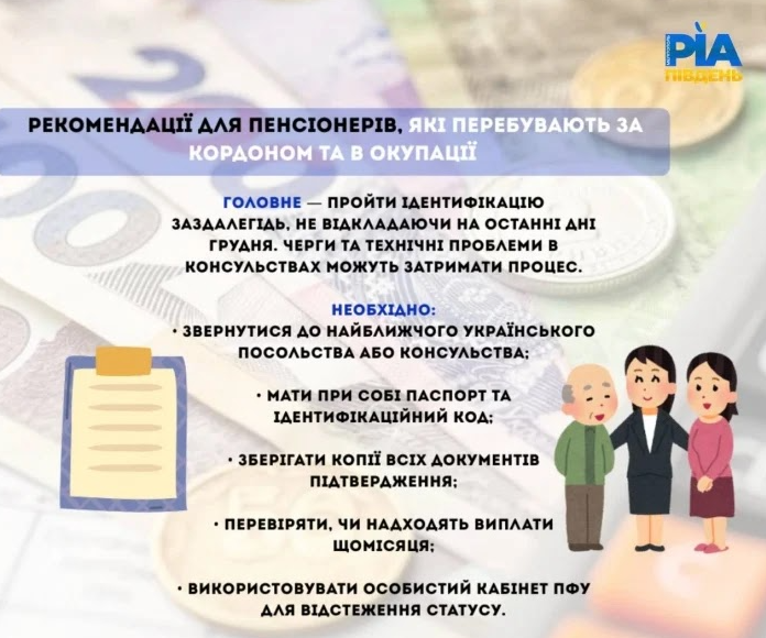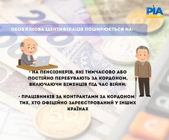 Обов’язкова ідентифікація поширюється на пенсіонерів, які тимчасово або постійно перебувають за кордоном, включаючи біженців під час війни, працівників за контрактами за кордоном і тих, хто офіційно зареєстрований у інших країнах.