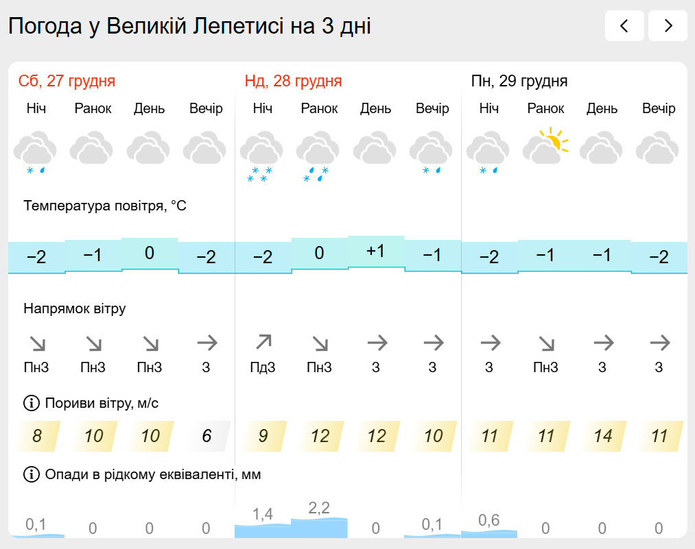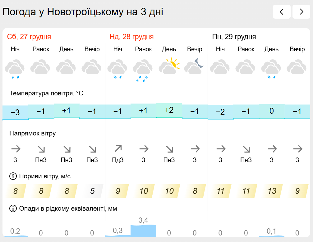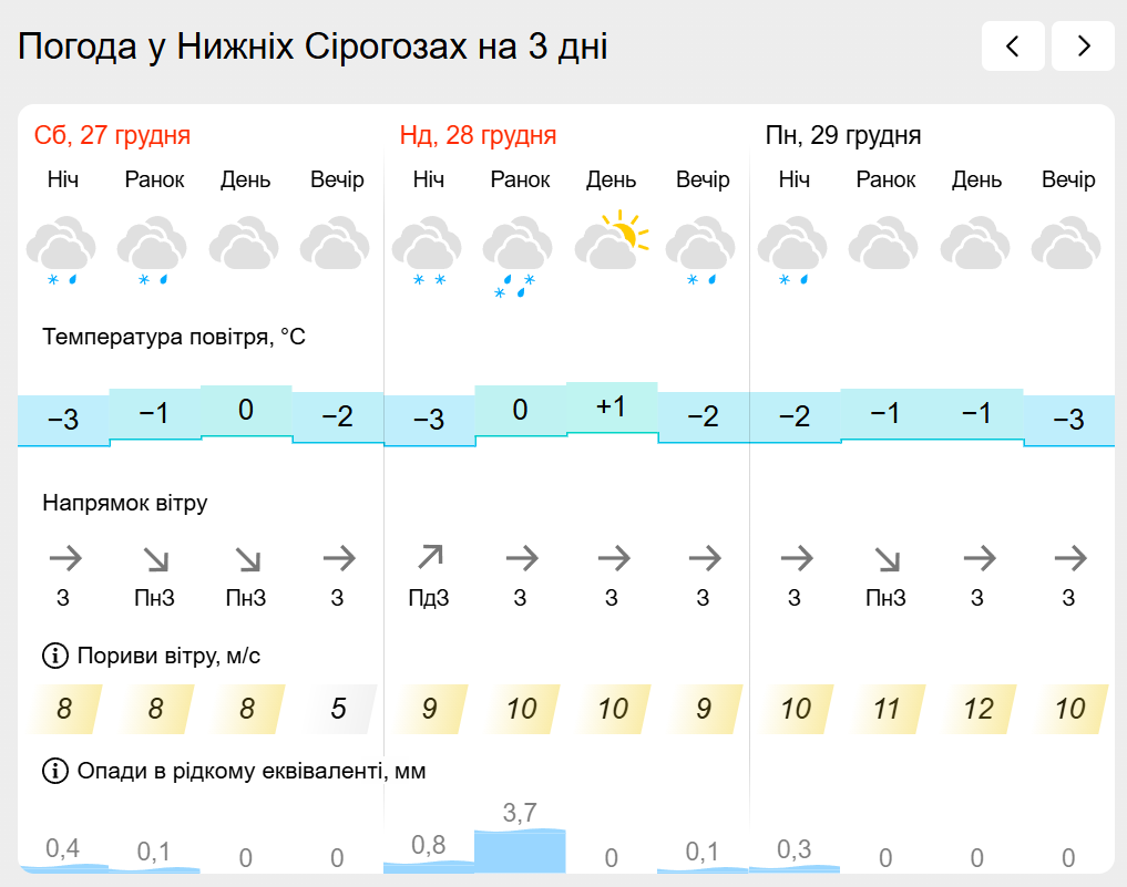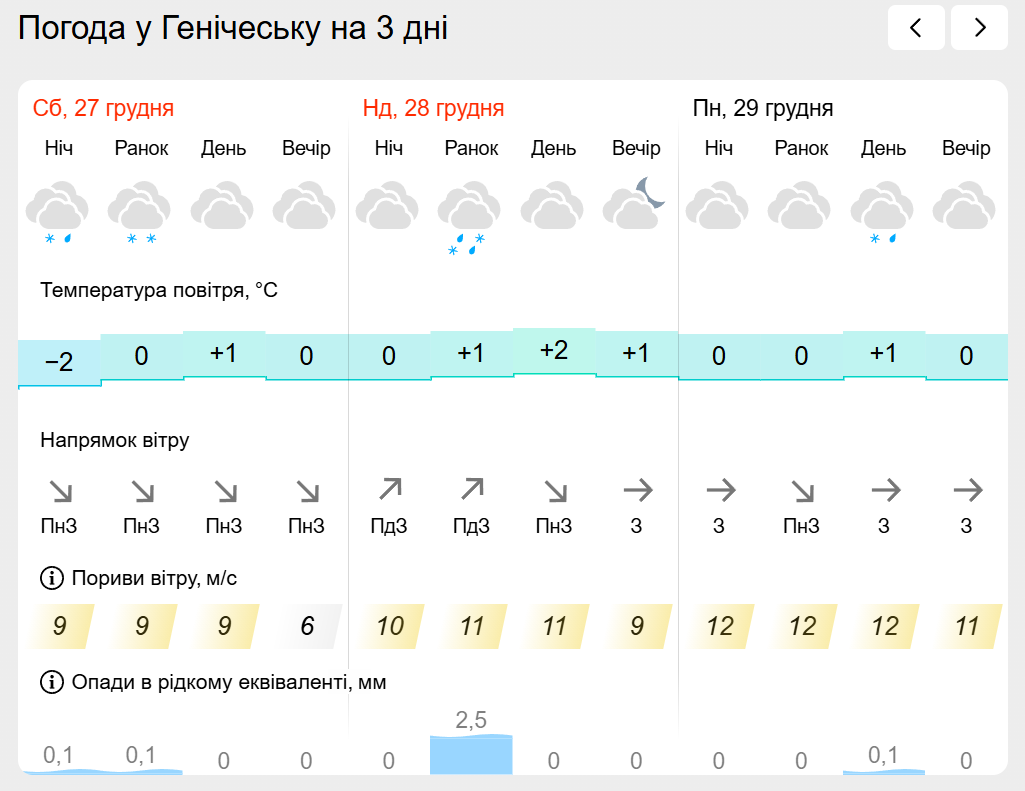 За інформацією Українського гідрометеорологічного центру прогноз погоди в населених пунктах лівобережної Херсонщини: Генічеську, Горностаївці, Великій Лепетисі, Верхньому Рогачку, Нижніх Сірогозах, Новотроїцькому на найближчих три дні.