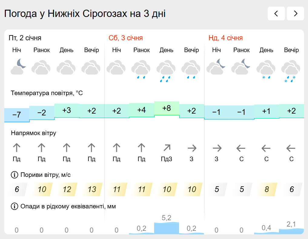 За інформацією Українського гідрометеорологічного центру прогноз погоди в населених пунктах лівобережної Херсонщини: Генічеську, Горностаївці, Великій Лепетисі, Верхньому Рогачку, Нижніх Сірогозах, Новотроїцькому на найближчих три дні.