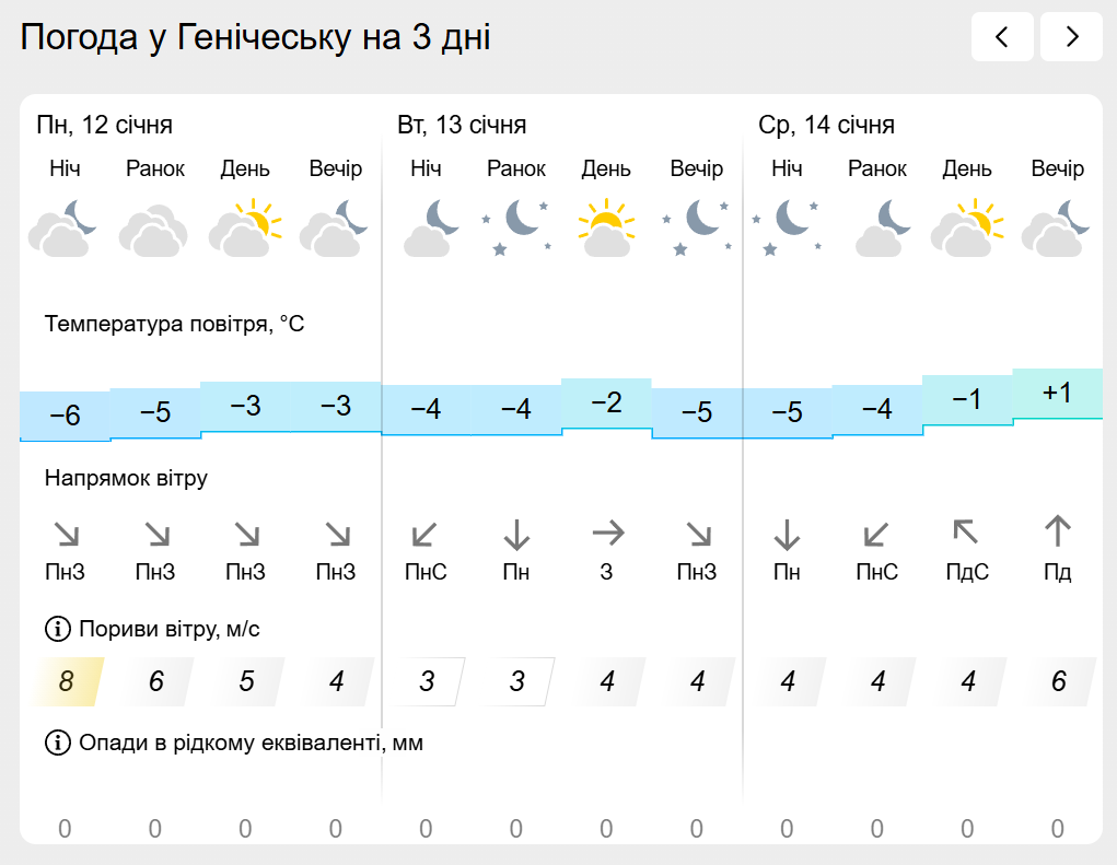 За інформацією Українського гідрометеорологічного центру прогноз погоди в населених пунктах лівобережної Херсонщини: Генічеську, Горностаївці, Великій Лепетисі, Верхньому Рогачку, Нижніх Сірогозах, Новотроїцькому на найближчих три дні.