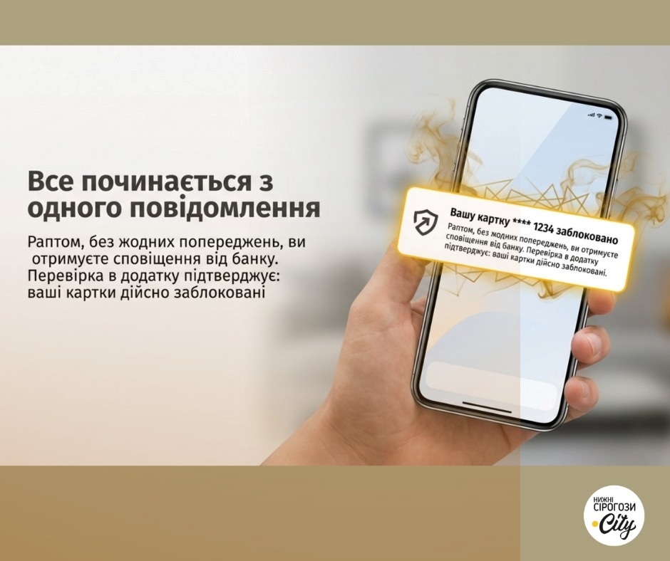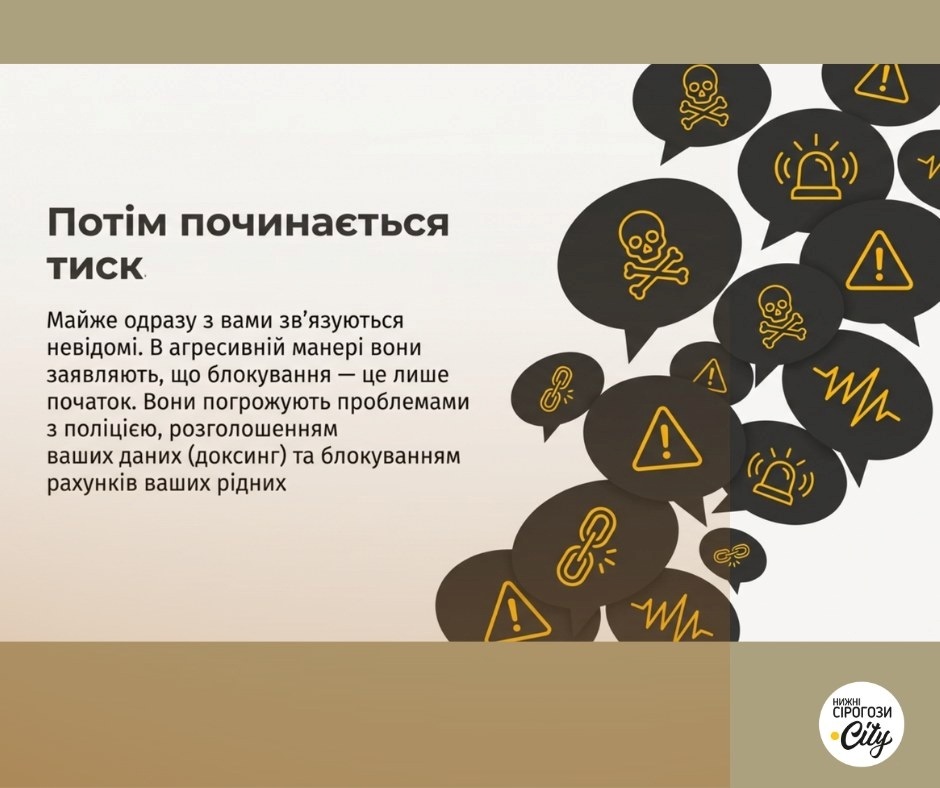 Людина опиняється в стресовій ситуації: доступ до коштів обмежений, а невідомі особи переконують, що це лише «початок».
