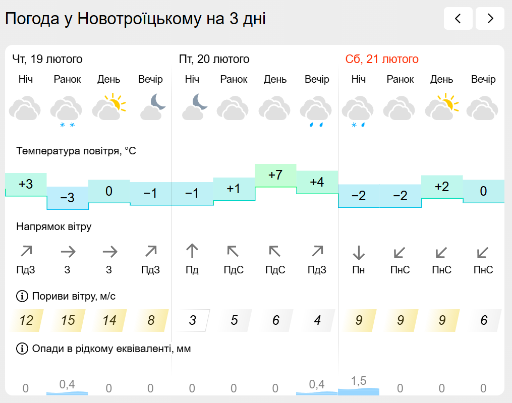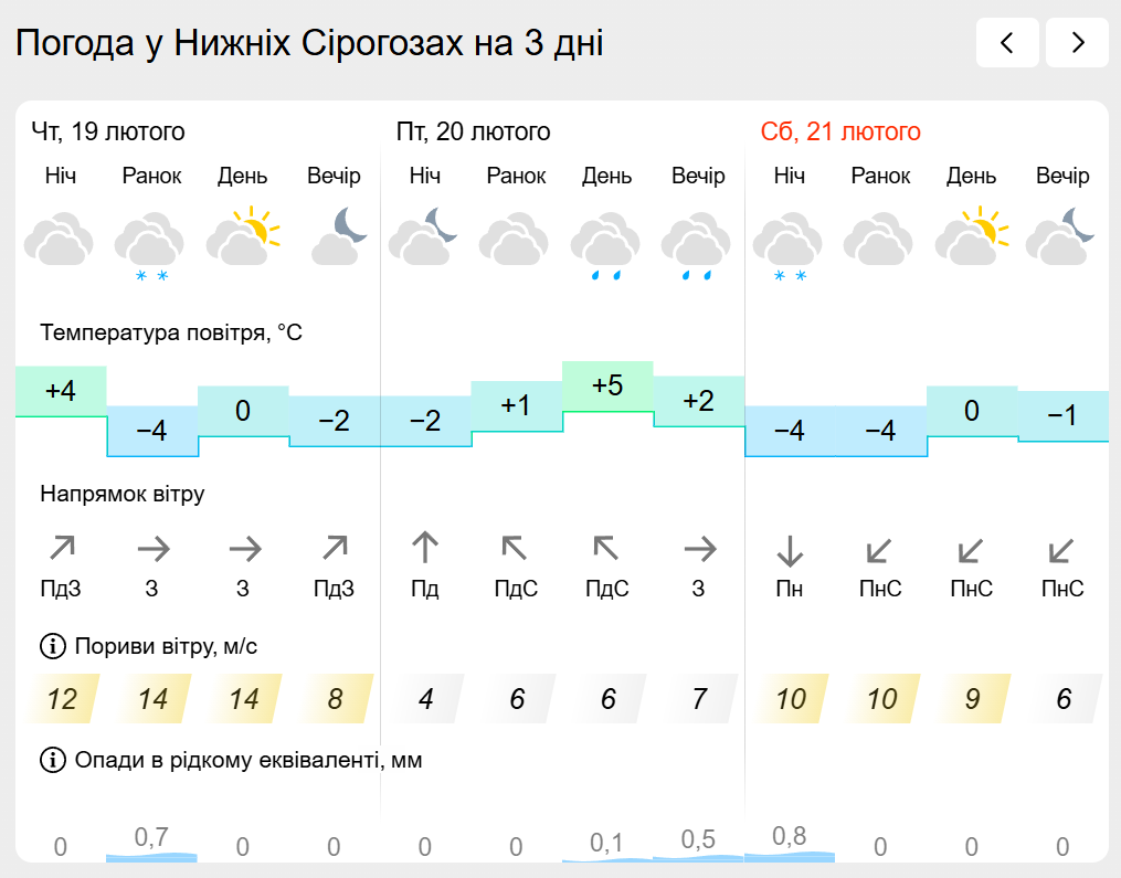 За інформацією Українського гідрометеорологічного центру прогноз погоди в населених пунктах лівобережної Херсонщини: Генічеську, Горностаївці, Великій Лепетисі, Верхньому Рогачку, Нижніх Сірогозах, Новотроїцькому на найближчих три дні.