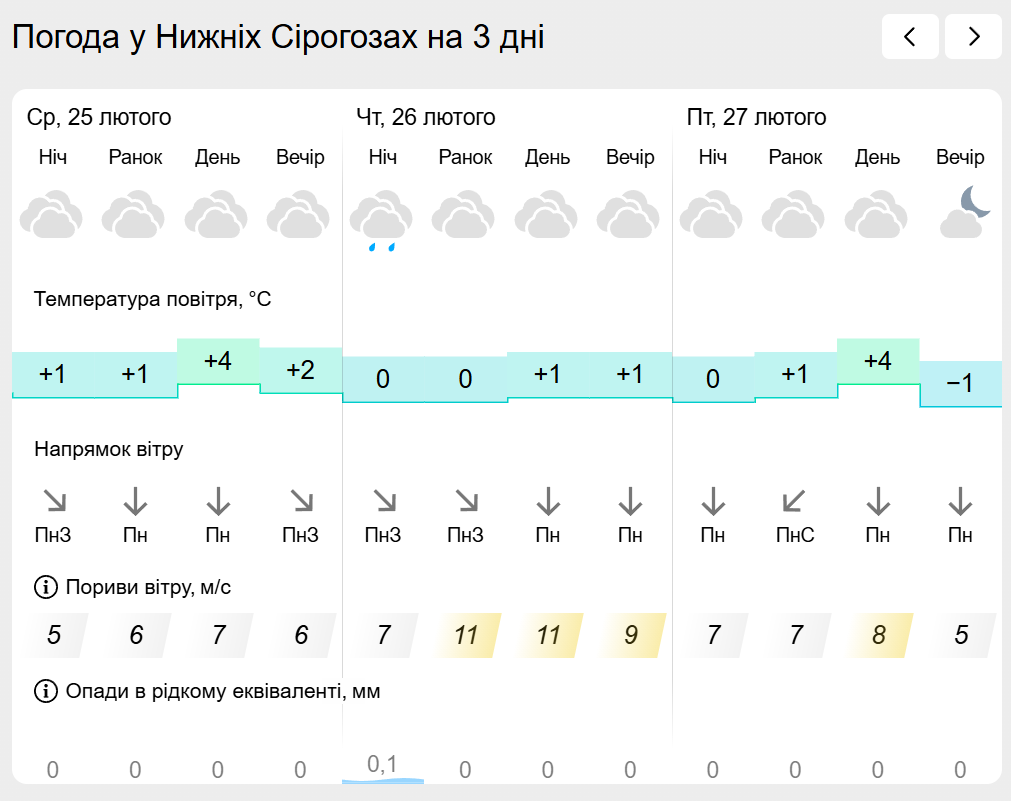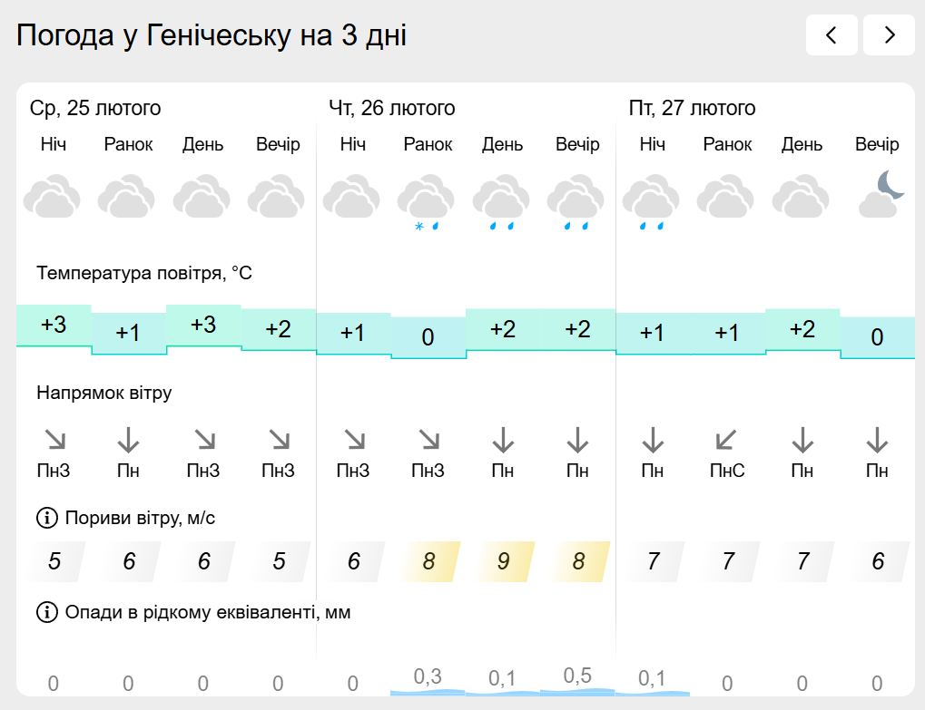 За інформацією Українського гідрометеорологічного центру прогноз погоди в населених пунктах лівобережної Херсонщини: Генічеську, Горностаївці, Великій Лепетисі, Верхньому Рогачку, Нижніх Сірогозах, Новотроїцькому на найближчих три дні.