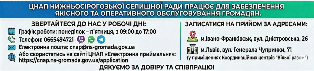Релокований ЦНАП і надалі забезпечуватиме жителів громади якісними адміністративними послугами, докладаючи максимум зусиль для їх оперативного та комфортного отримання. Якщо потрібна допомога — звертайтесь, команда ЦНАП завжди готова підтримати!