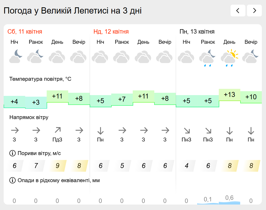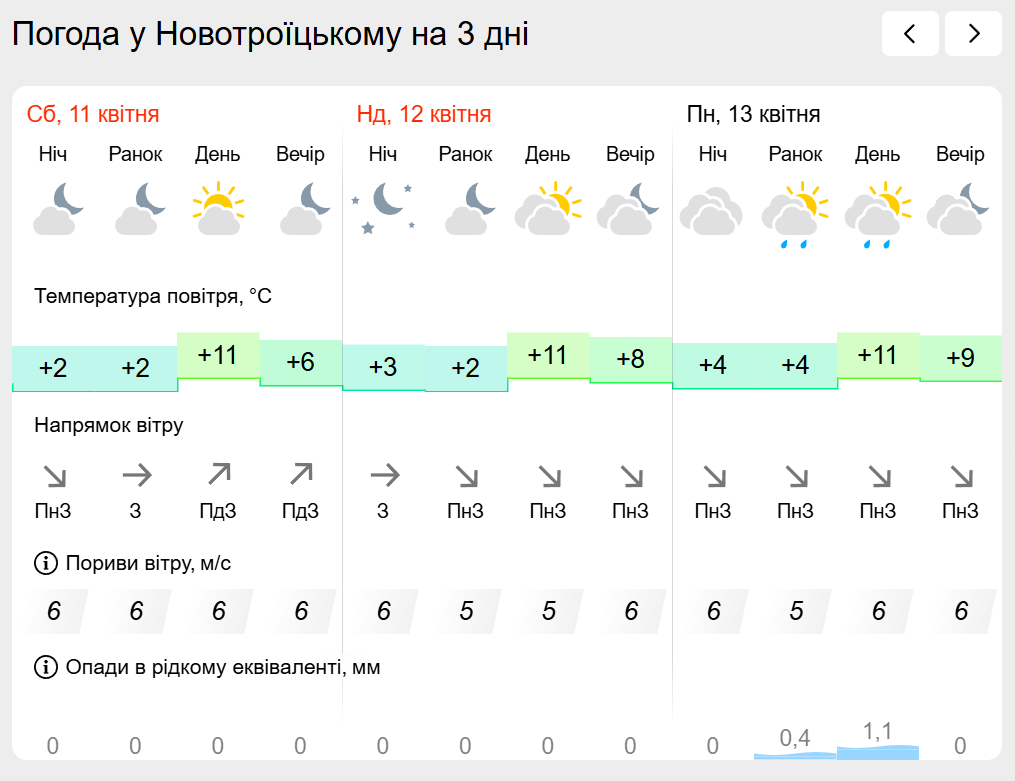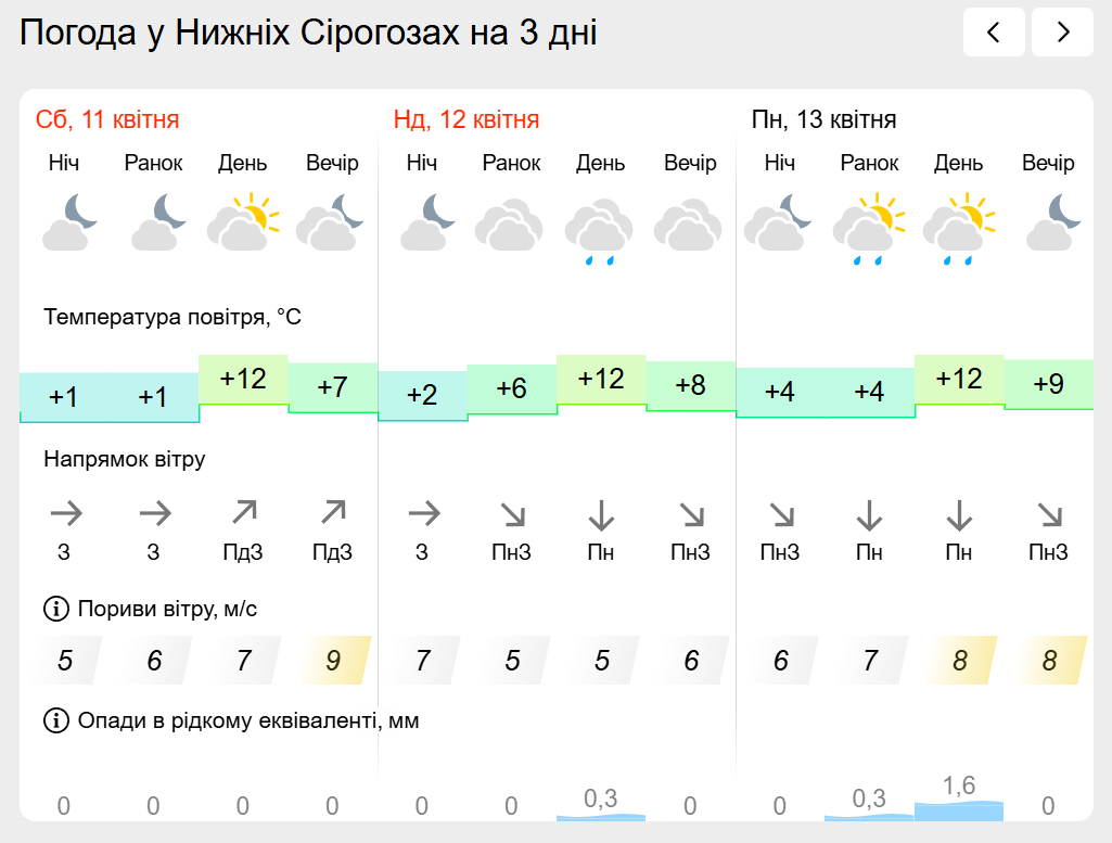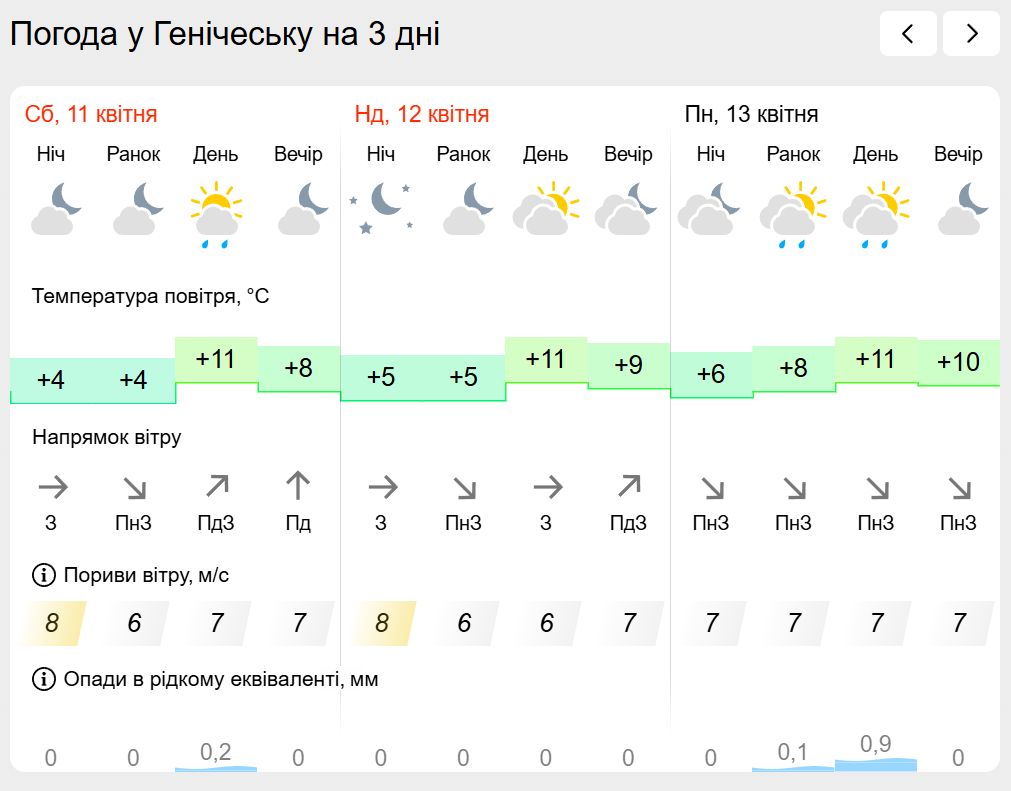 За інформацією Українського гідрометеорологічного центру прогноз погоди в населених пунктах лівобережної Херсонщини: Генічеську, Горностаївці, Великій Лепетисі, Верхньому Рогачку, Нижніх Сірогозах, Новотроїцькому на найближчих три дні.
