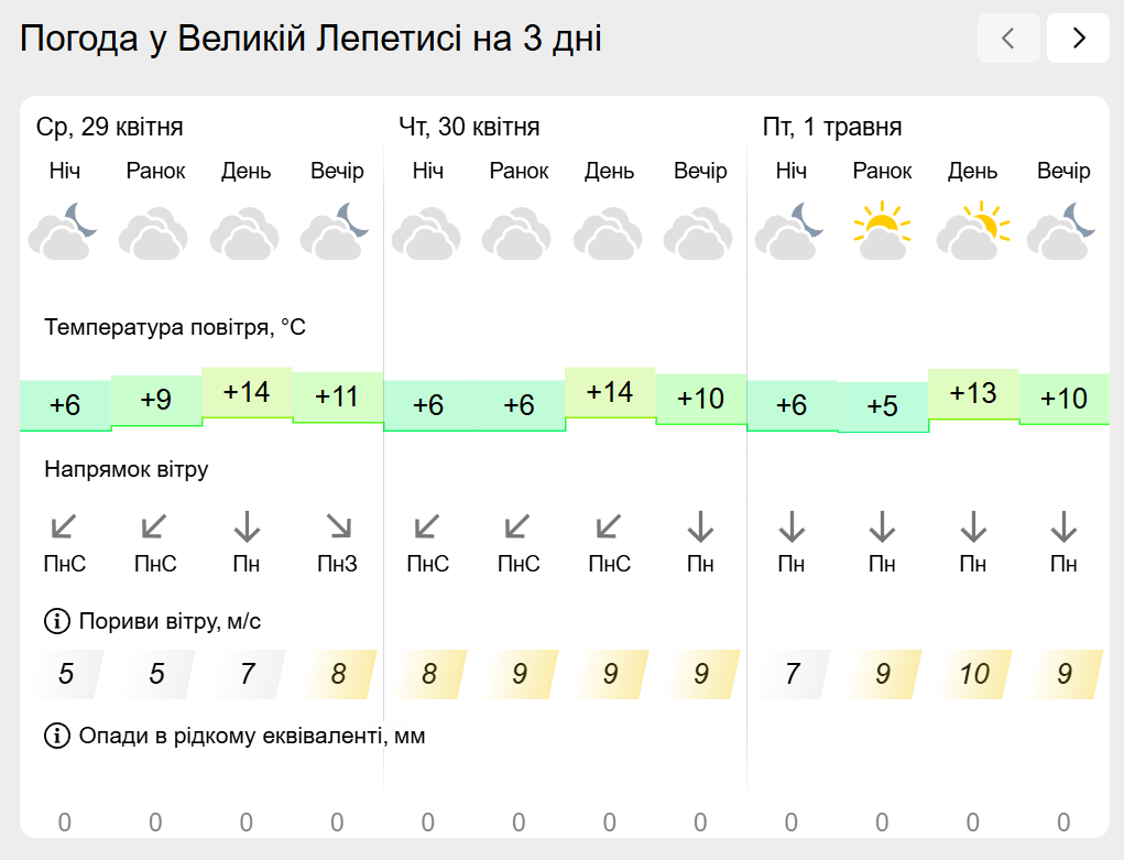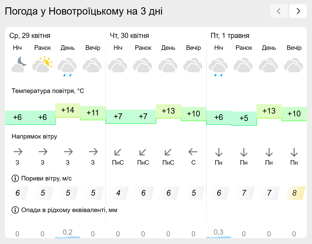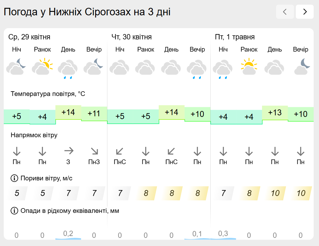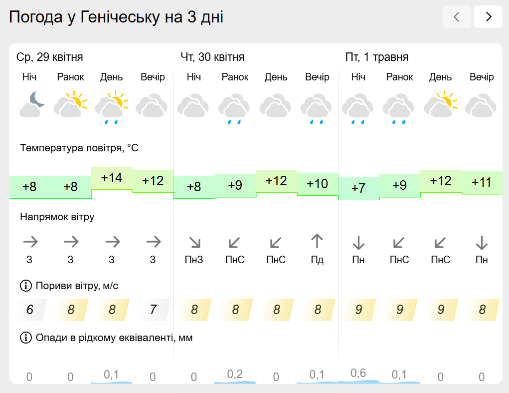 За інформацією Українського гідрометеорологічного центру прогноз погоди в населених пунктах лівобережної Херсонщини: Генічеську, Горностаївці, Великій Лепетисі, Верхньому Рогачку, Іванівці, Нижніх Сірогозах, Новотроїцькому на найближчих три дні.