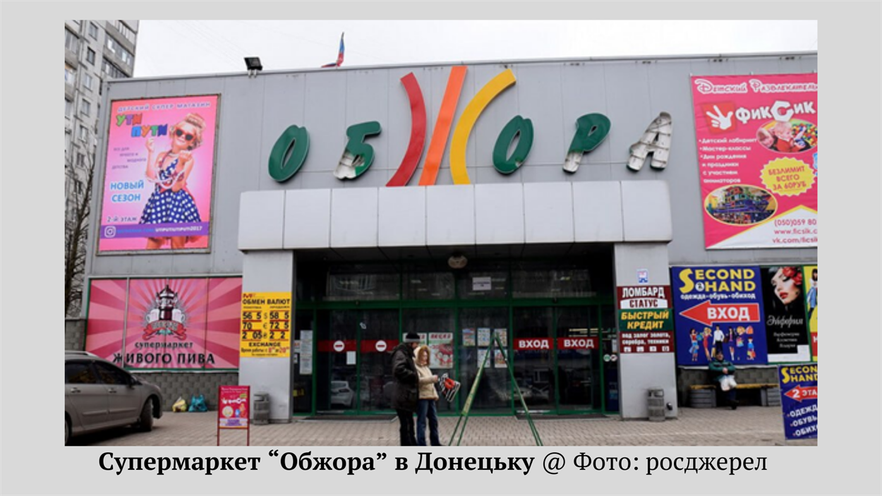 Окремо звертають нашу увагу на те, що до Донецька, наприклад, намагаються зайти саме російські мережі магазинів, тим самим витіснивши місцевий бізнес. Навіть ті люди, які раніше погодилися працювати під російським керівництвом міста, тепер не у найкращому стані, бо їхні магазини ставлять в такі умови, що триматися на плаву й конкурувати з великими супермаркетами важко — попри те, що ціни у місцевих ларьках можуть бути нижчі.