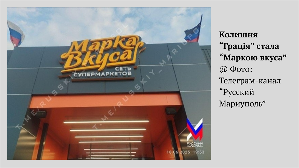 Зараз ці магазини окупанти також перейменовують на “Марку Вкуса”