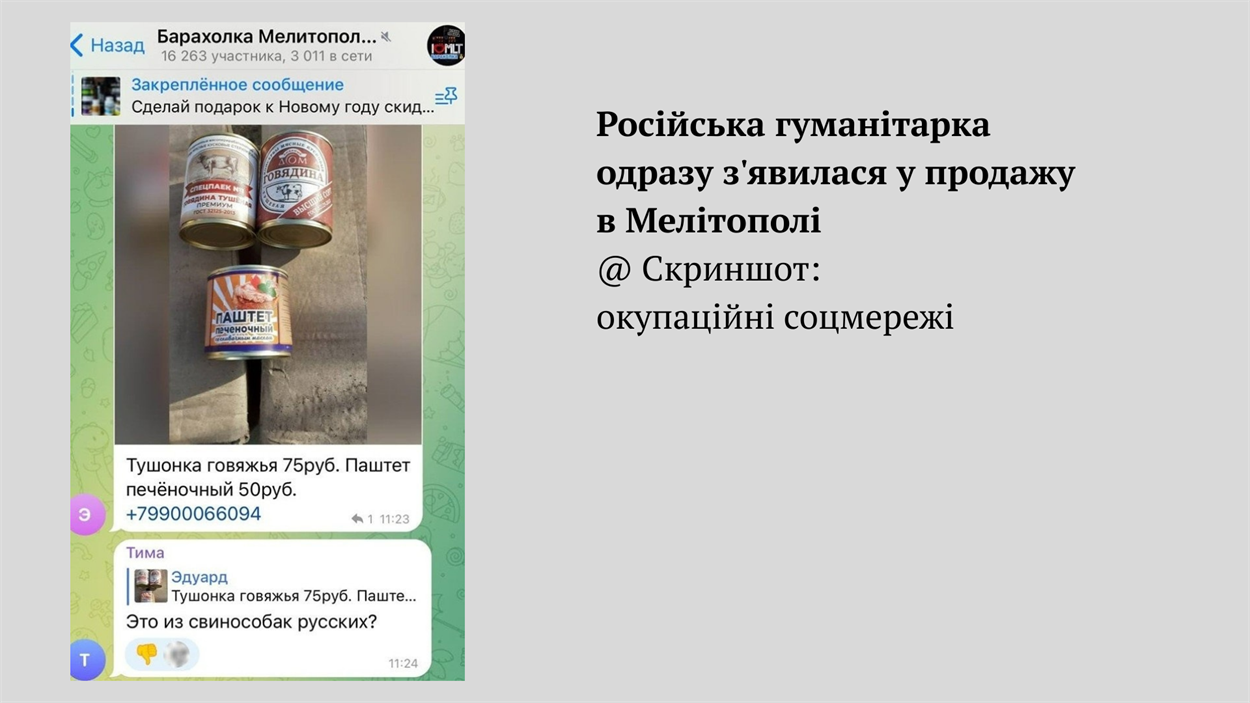 Тим часом мешканці Мелітополя страждають від неякісних продуктів, тоді як прибутки йдуть на пропаганду або у кишені гауляйтера Балицького.