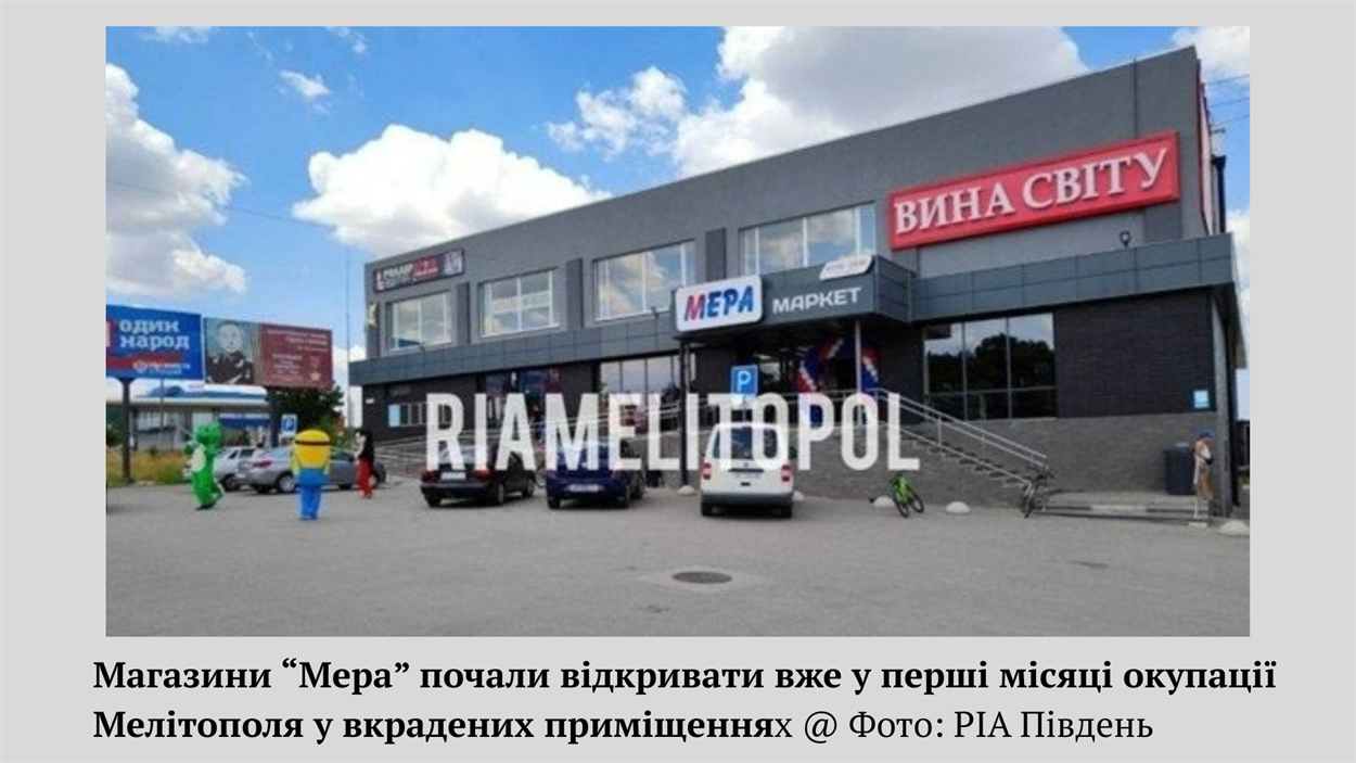 Окупаційна влада розглядає “Мєру” як інструмент економічного управління. Магазини відкривають у кожному великому населеному пункті, замінюючи українські бренди та створюючи ілюзію «нової нормальності».