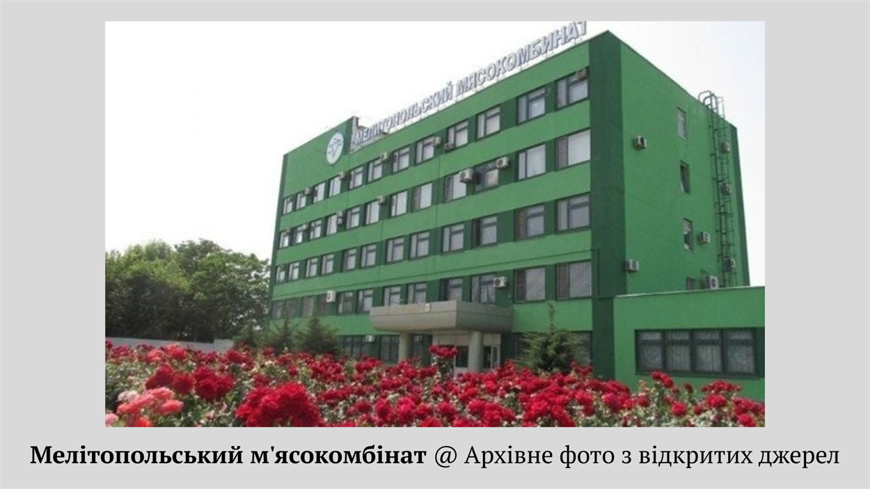 Мелітопольський м’ясокомбінат — потужне підприємство, яке виробляло ковбаси, м’ясо та напівфабрикати для всього регіону. Він став одним із перших “віджатих” у харчовій галузі.