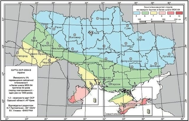 Інженери під час розрахунку конструкцій будинків і споруд користуються мапою сейсмічного районування. Фото: з фейсбуку Дмитра Макагона