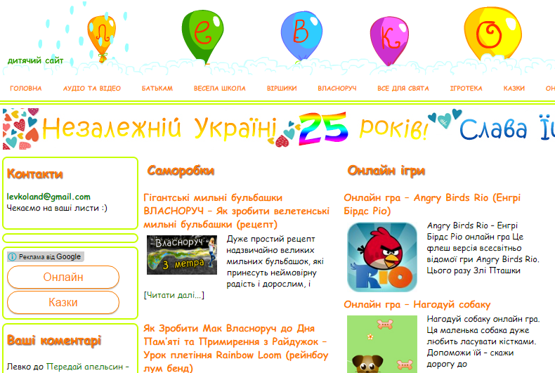 “Левко” — сайт для дітей та батьків, що пропонує великий вибір ігор, лічилок, загадок, віршів, казок, аудіо та відео матеріалів, поради з рукоділля, розмальовки, найпростіші кулінарні рецепти для малечі, та сценарії дитячих свят.