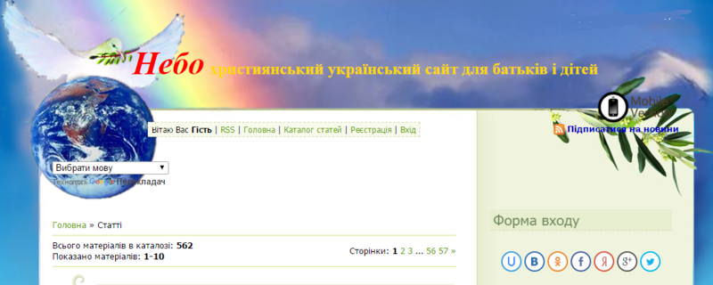 “Небо” — сайт християнської тематики для батьків та дітей з великою кількістю матеріалів та мультфільмів українською мовою, які можна переглядати online або завантажити на свій комп’ютер.
